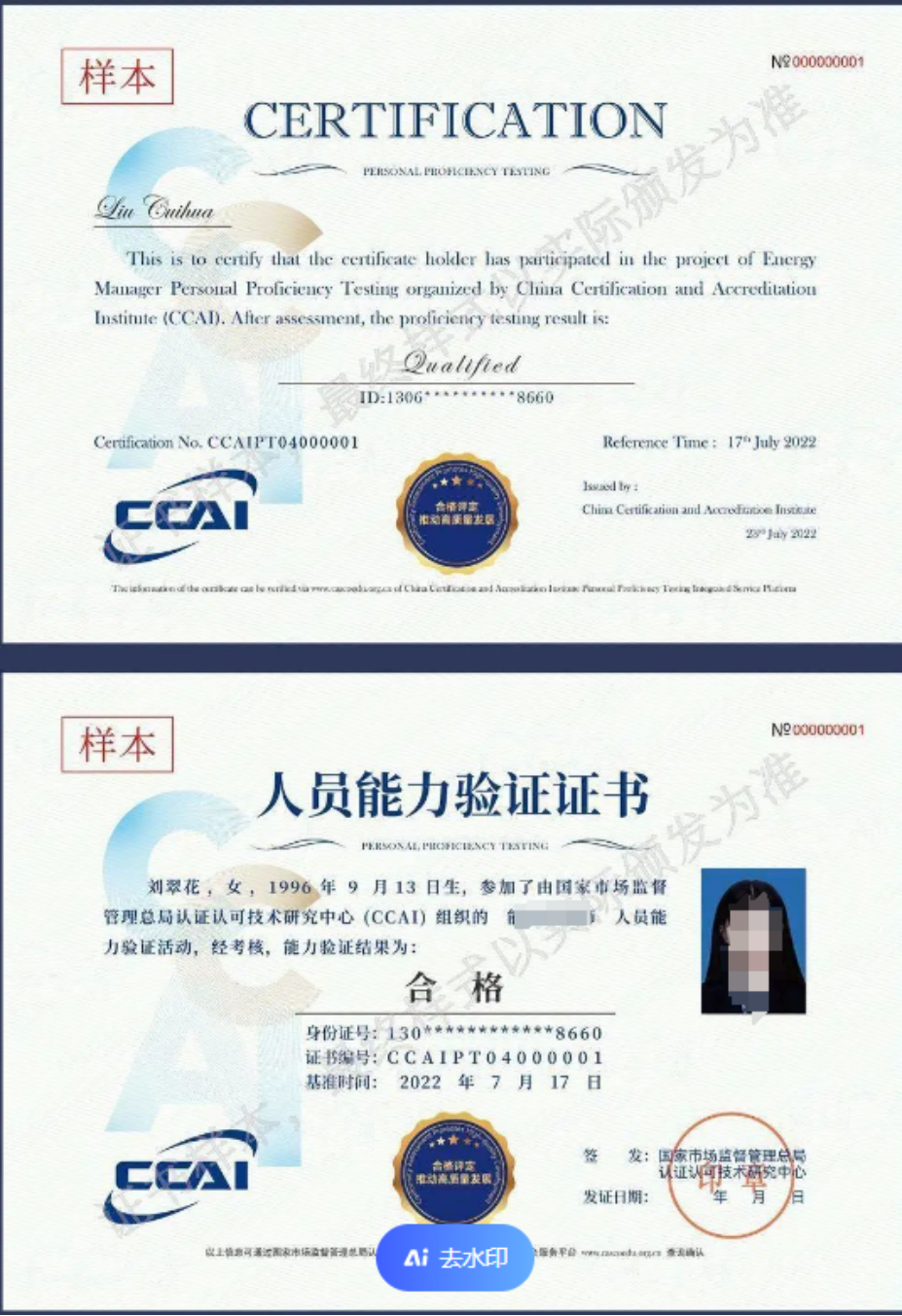 成绩≥90则颁发对应专业的《人员能力验证--优秀证书》