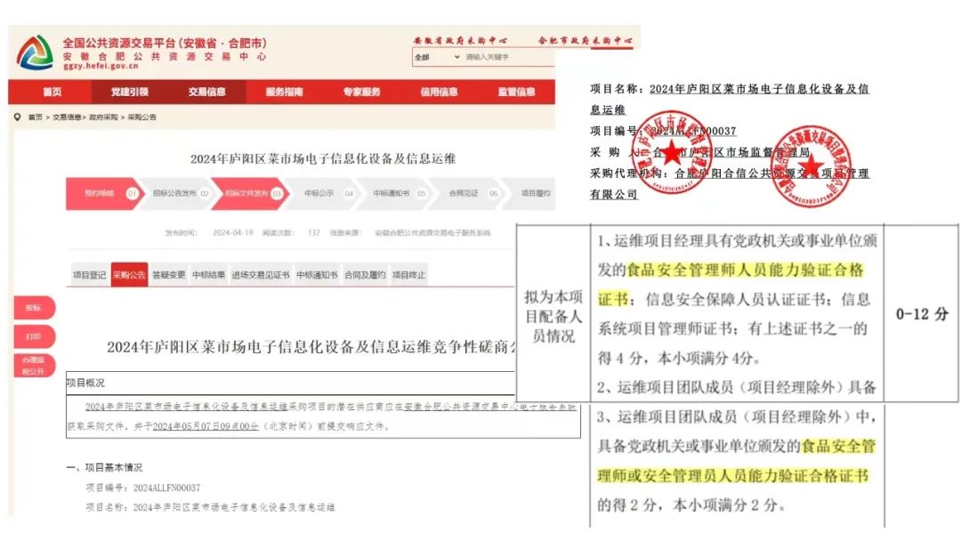 2024年庐阳区菜市场电子信息化设备及信息运维竞争性磋商公告