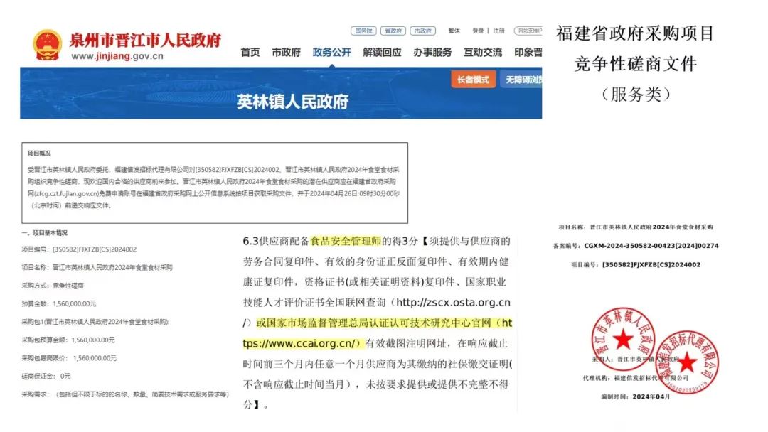 福建省晋江市英林镇人民政府2024年食堂食材采购竞争性磋商公告