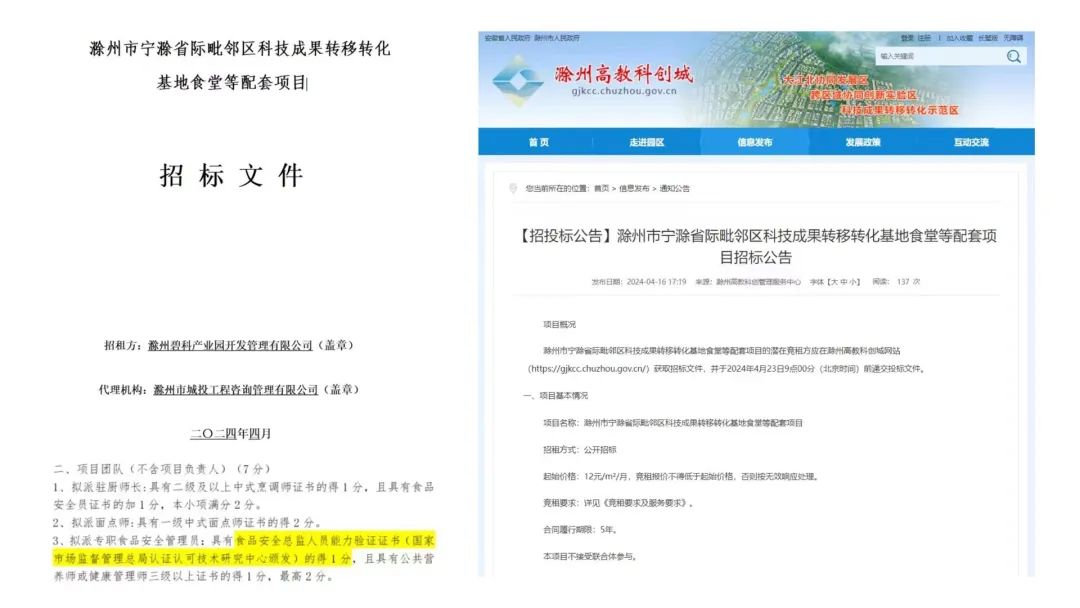 滁州市宁滁省际毗邻区科技成果转移转化基地食堂等配套项目招标公告