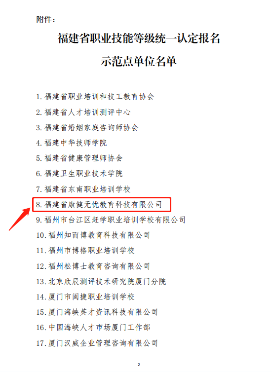 附件: 福建省职业技能等级统一认定报名示范点单位名单