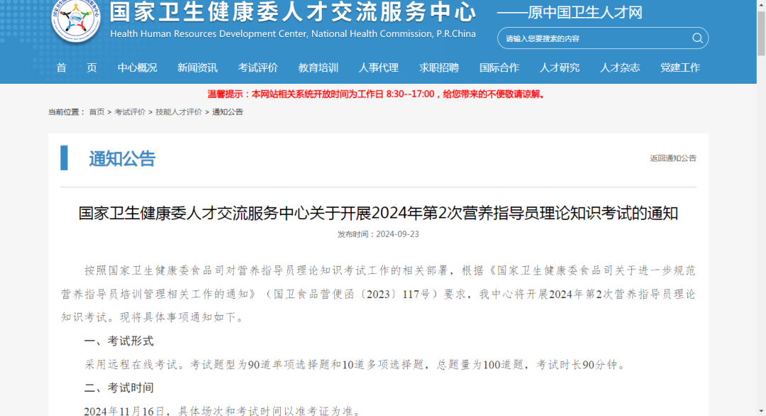 1. 登录国家卫生健康委人才交流服务中心官网(www.21wecan.com),考试评价-技能人才评价。